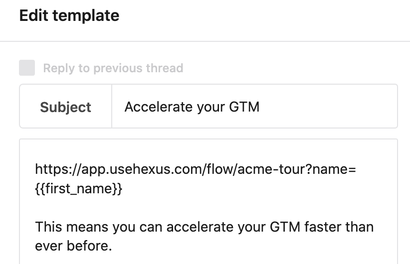 ?name=Kateto the URL to automatically populate the name variable with “Kate”. View an example:https://app.usehexus.com/flow/hubspot-tour?name=John -